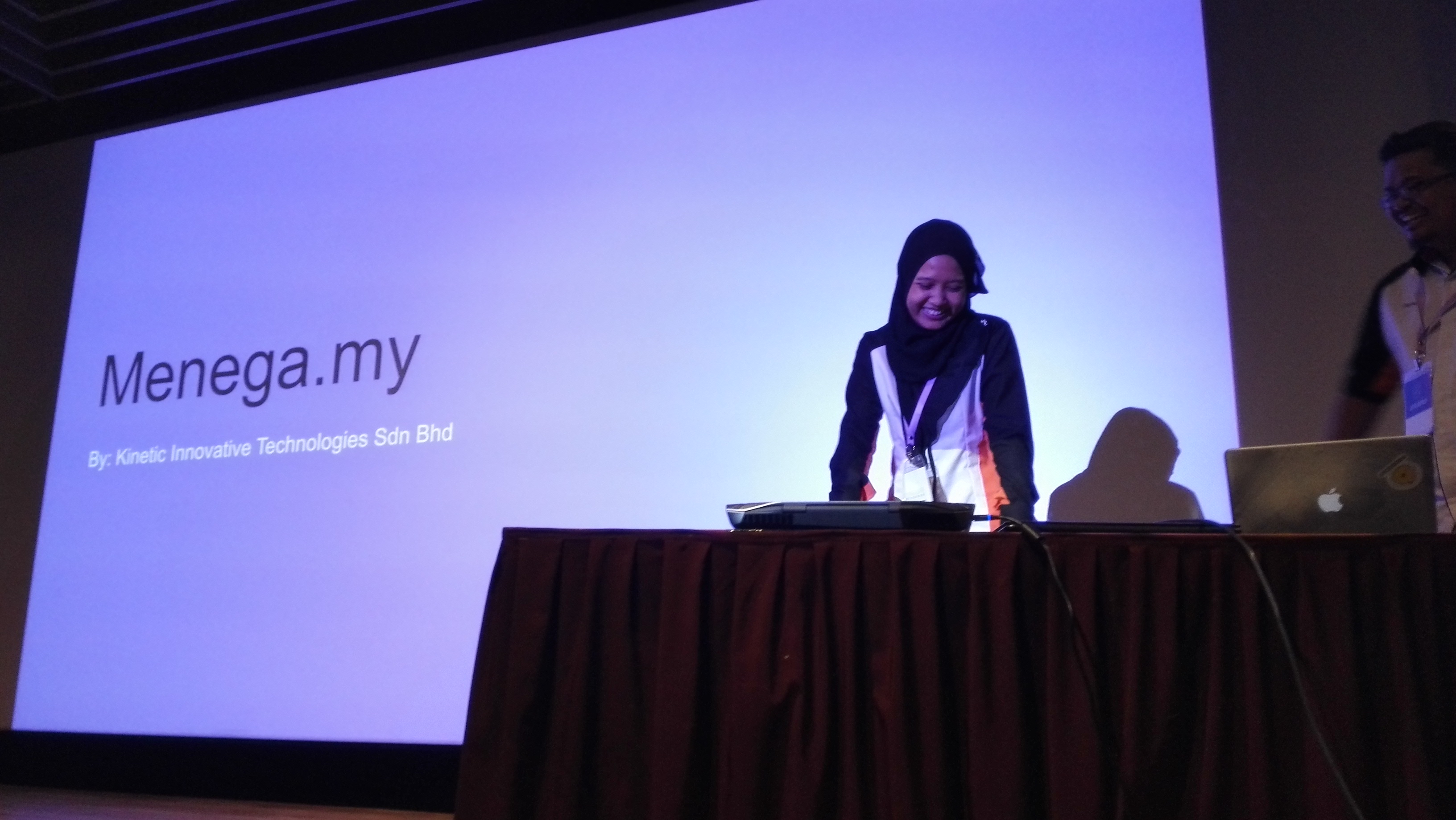 Menega (komersil) Menega sebuah marketplace yang menghubungkan pengguna dan penjual dalam satu persekitaran yang lebih selamat. Bagi penjual mereka juga boleh mendapat ciri-ciri tambahan seperti data tender oleh GLC dan kerajaan. Kinetic Innovative Technologies Sdn Bhd, http://www.menega.my Nordiana Abdullah, [email protected]